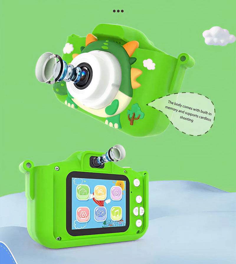 Let kids capture their world with a fun, dino-themed camera that’s easy to hold, safe to use, and packed with playful features. With built-in memory, simple controls, and a bright display, the Kiddomate DigiCam makes every adventure more exciting and creative.